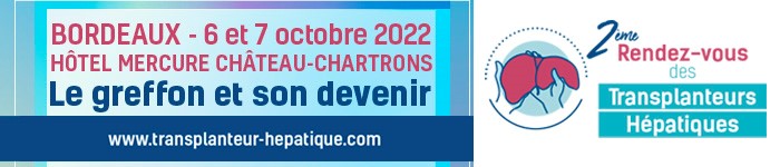 | Bonjour, Les inscriptions en ligne pour le 2ème Rendez-Vous des Transplanteurs Hépatiques sont maintenant closes. Vous pourrez vous inscrire directement sur place dès jeudi 6 octobre. Lieu du congrès : Hôtel Mercure Château-Chartrons 81 cours Saint Louis 33300 BORDEAUX Tel : 05 56 43 15 00 Dates et horaires : Congrès Chirurgiens : jeudi 6/10 : de 08h45 à 19h15 // accueil de 08h15 à 08h45 vendredi 07/10 : de 08h45 à 17h15 // accueil de 08h15 à 08h45 Session paramédicale : jeudi 06/10 : de 09h15 à 18h15 // accueil de 08h45 à 09h15 Tarifs :